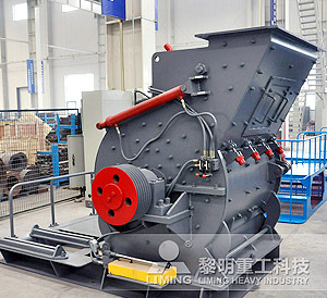 主機通過電機、三角皮帶帶動主軸,從而使轉(zhuǎn)子旋轉(zhuǎn),錘頭受到旋轉(zhuǎn)時所產(chǎn)生的離心力向四周伸開,大塊物料從進料口進入破碎腔之后,便被高速運動的錘子擊碎。破碎合格的物料則由下部有縫隙的蓖條排出,不合格的則留在破碎腔內(nèi),被錘子和承擊鐵塊反復(fù)作用,直至能夠合格排出。