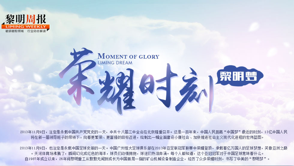 自1987年成立以來,26年間黎明重工從默默無聞到成長為業(yè)內(nèi)知名的礦山機(jī)械設(shè)備制造企業(yè),經(jīng)歷了眾多榮耀時刻,書寫了華美的"黎明夢"。